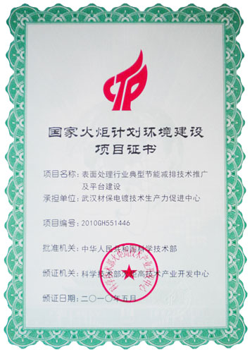 我所“表面处理行业典型节能减排技术推广及平台建设”项目被列入国家火炬计划。