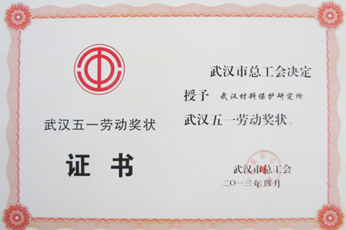 “武汉五一劳动奖状”是对为武汉市经济建设、政治建设、文化建设、社会建设、生态文明建设和党的建设作出突出贡献的先进集体的表彰。这是我所建所至今首次获得该项荣誉,更是武汉市总工会对我所近年来各项工作的充分肯定。该荣誉的获得也为武汉材料保护研究所建所60周年献上了一份厚礼。