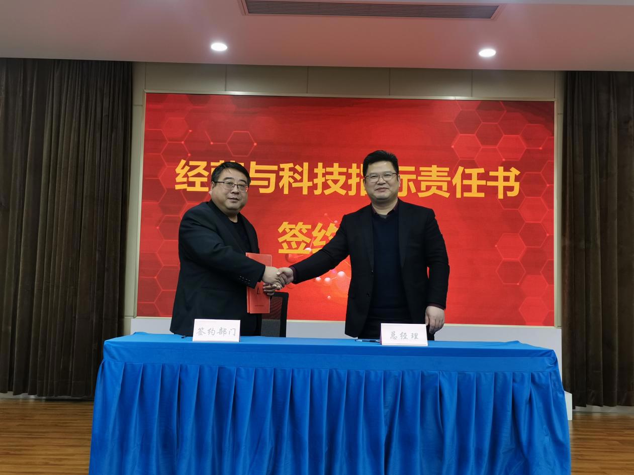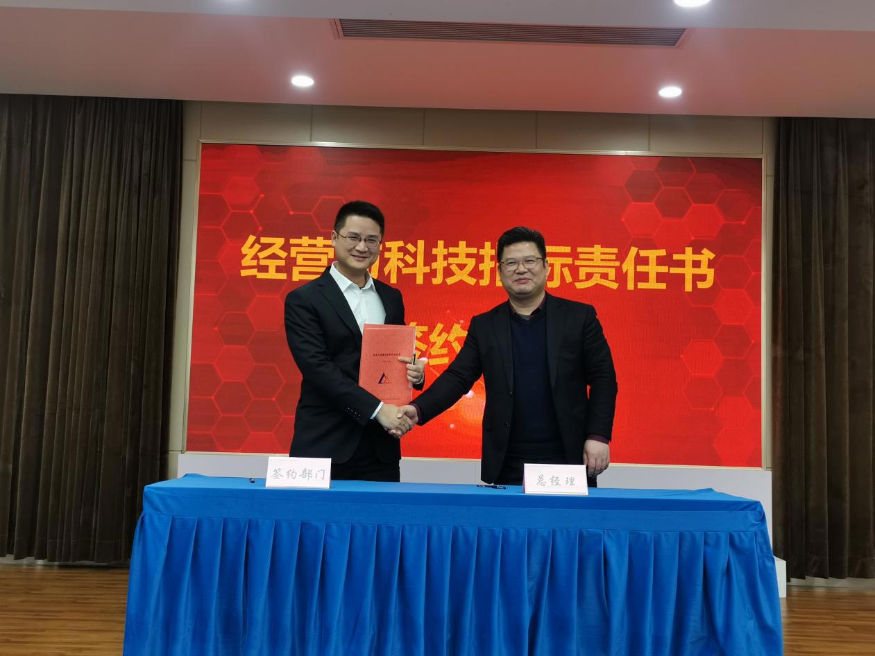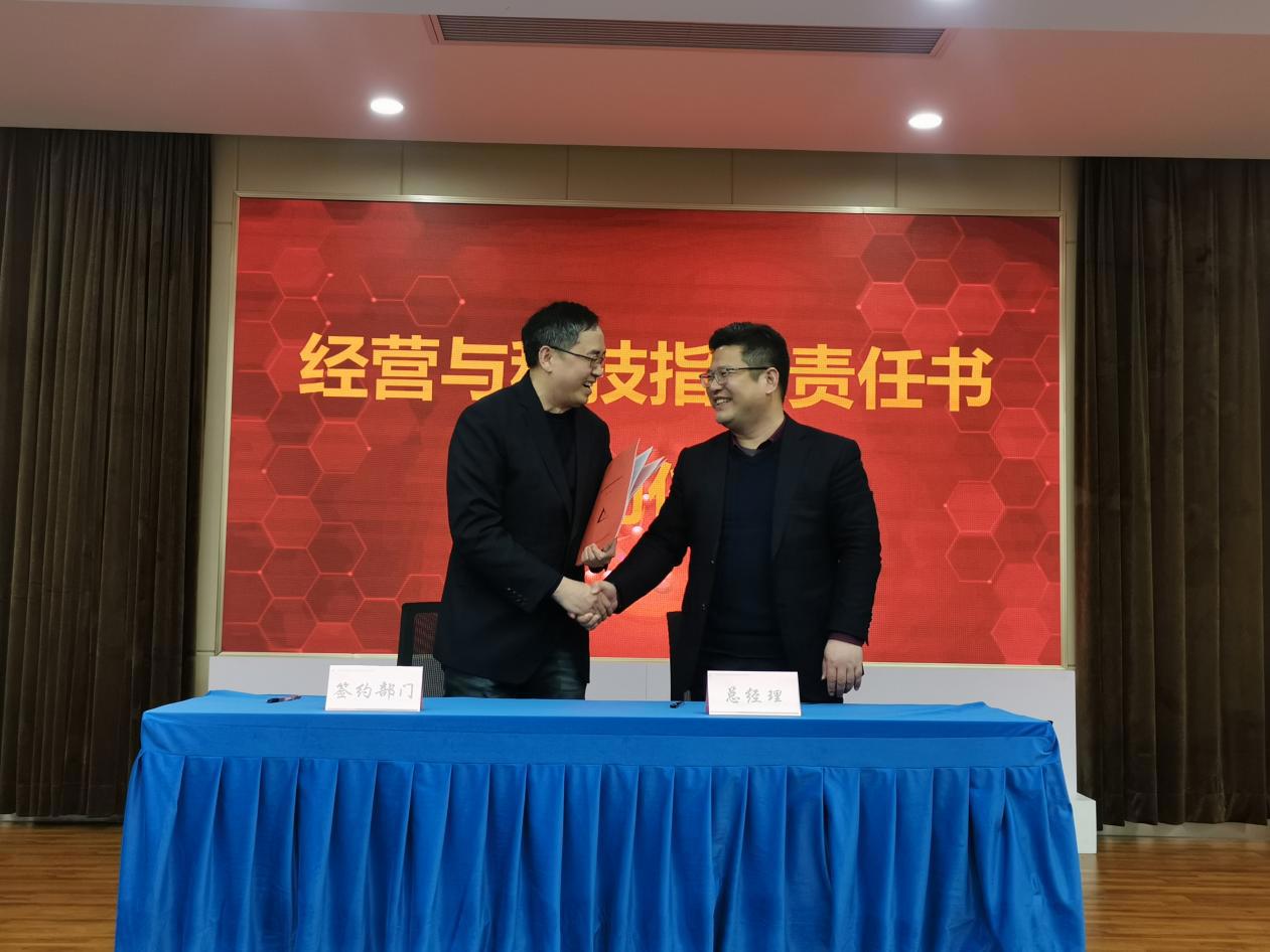 会上举行了干部任期制契约化签约仪式,党委副书记、总经理陈同舟代表经理层与十个一线部门负责人签订经营与科技目标责任书,激励大家继续艰苦奋斗,共同拼搏确保目标完成。