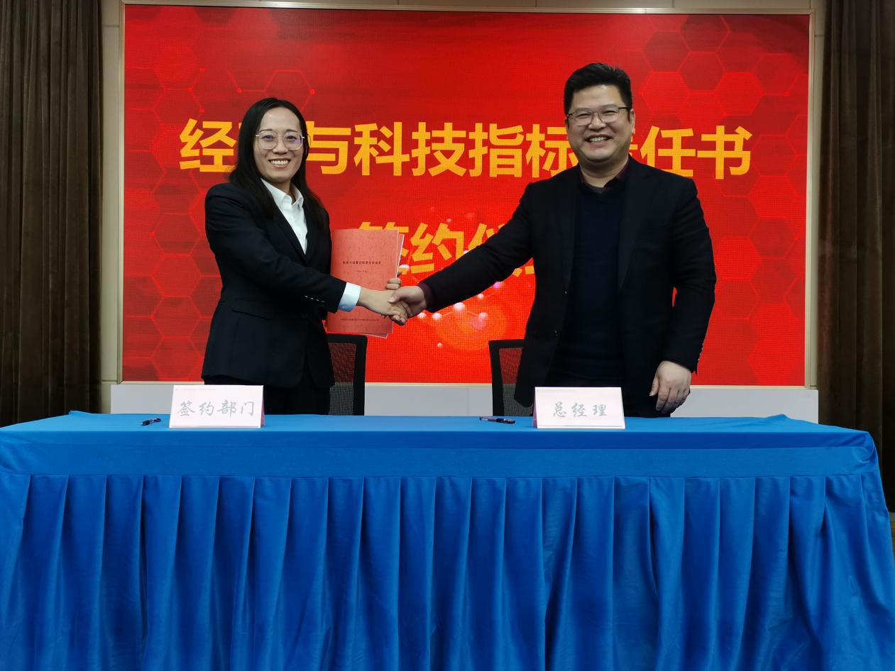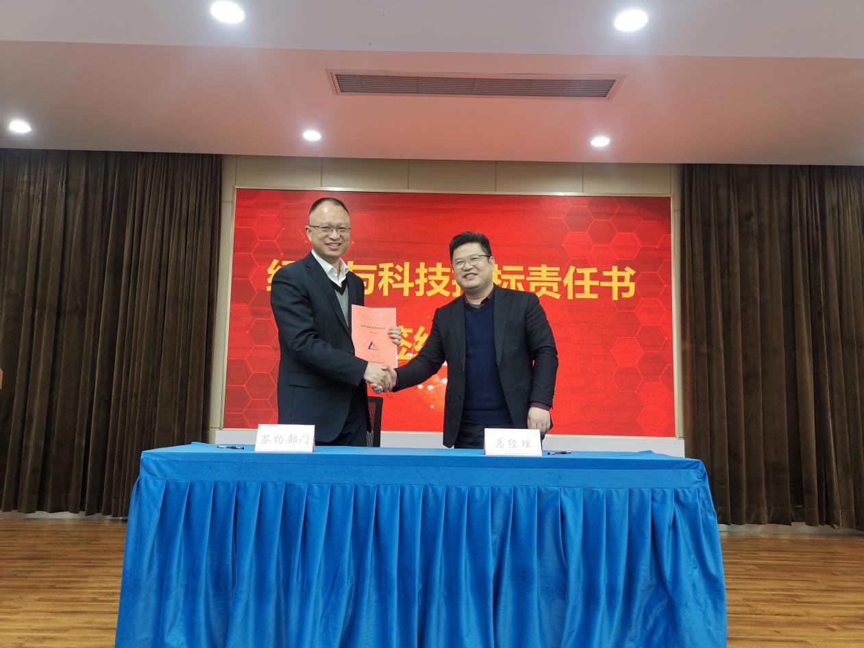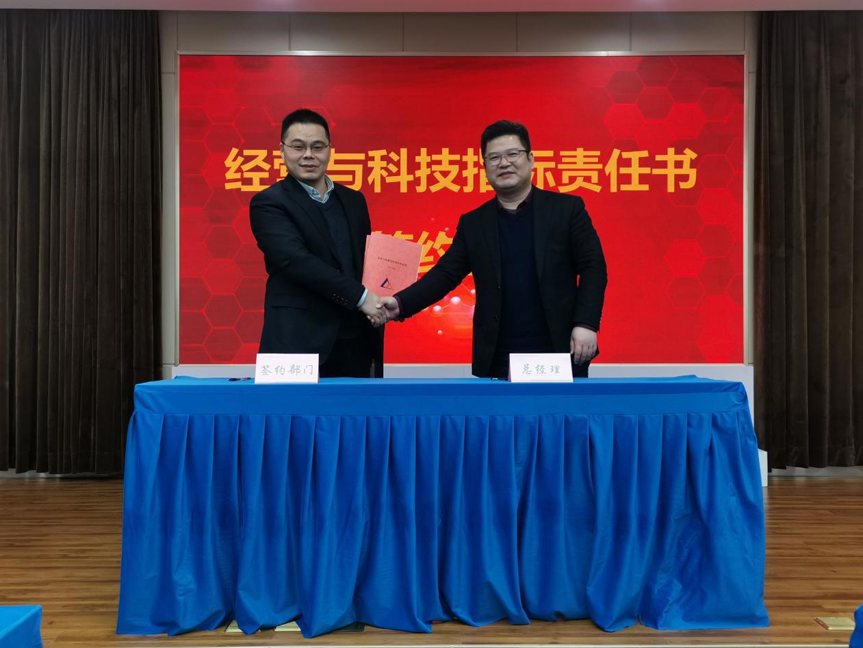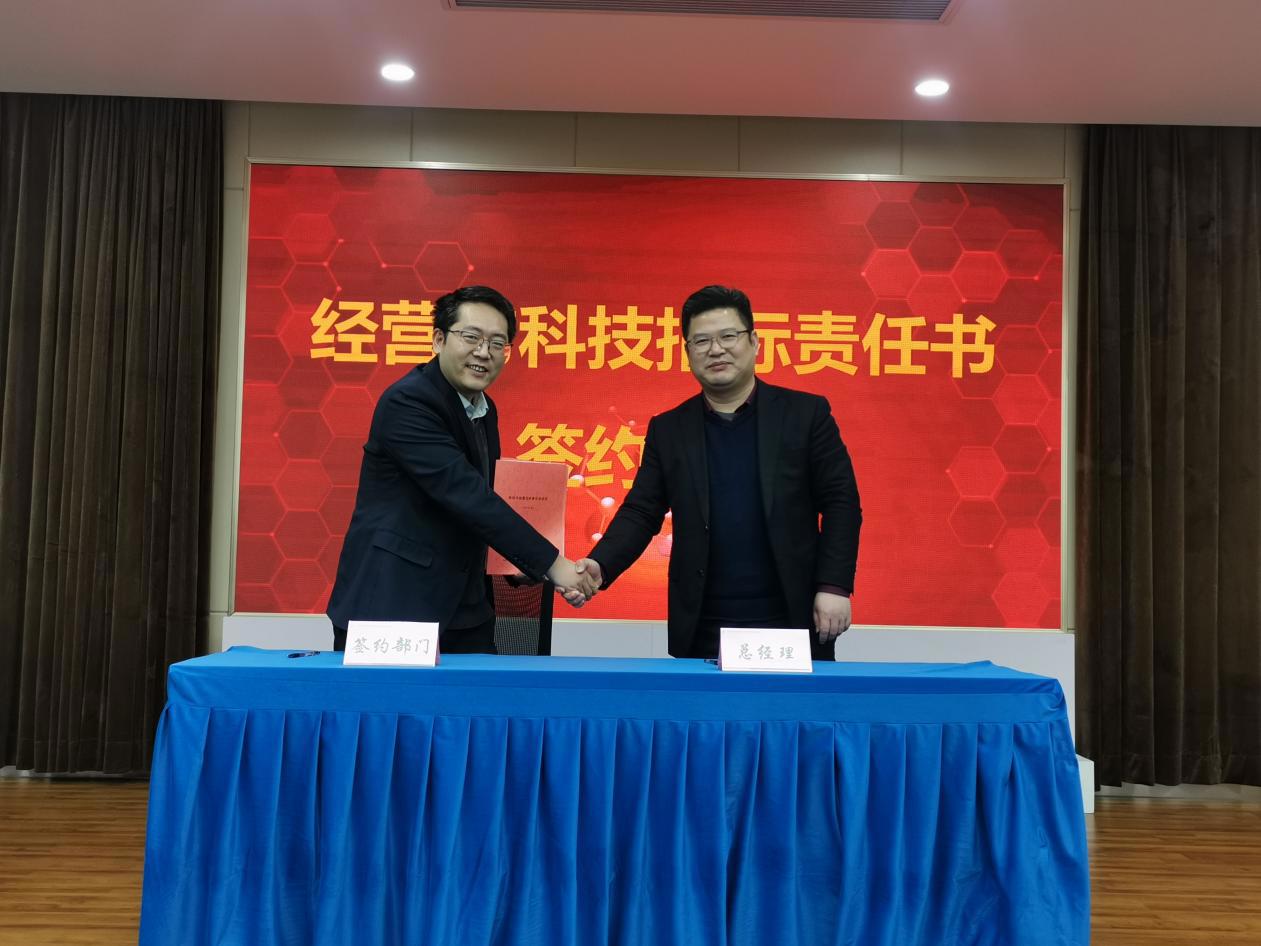 会上举行了干部任期制契约化签约仪式,党委副书记、总经理陈同舟代表经理层与十个一线部门负责人签订经营与科技目标责任书,激励大家继续艰苦奋斗,共同拼搏确保目标完成。