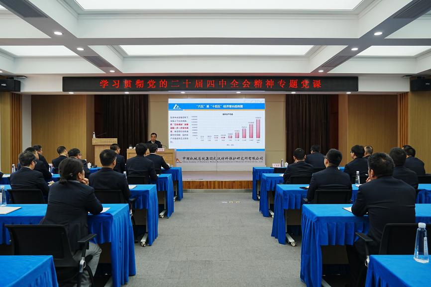 11月20日,材保所举办党的二十届四中全会精神专题学习会。集团党委副书记、董事李玉鑫出席会议并以《学习贯彻党的二十届四中全会精神 领会规划 学习规划 做好规划》为题讲授专题党课。公司党委副书记、总经理陈同舟主持会议。材保所领导班子、中层干部、各党支部书记及委员、优秀年轻干部、党团员代表和统战人士等50余人参加学习。