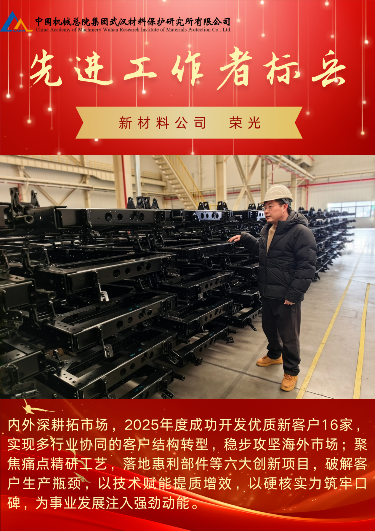 为落实人才强企战略,激发全员干事创业热情,凝聚“十五五”奋进合力,公司重磅推出《学先进 启新程》专栏。本期聚焦2025年度先进工作者标兵,讲述他们攻坚克难、锐意进取的先进事迹,让榜样精神在新征程上赓续传承,引领全体员工踔厉奋发、勇毅前行,为材保所高质量发展接续奋斗。