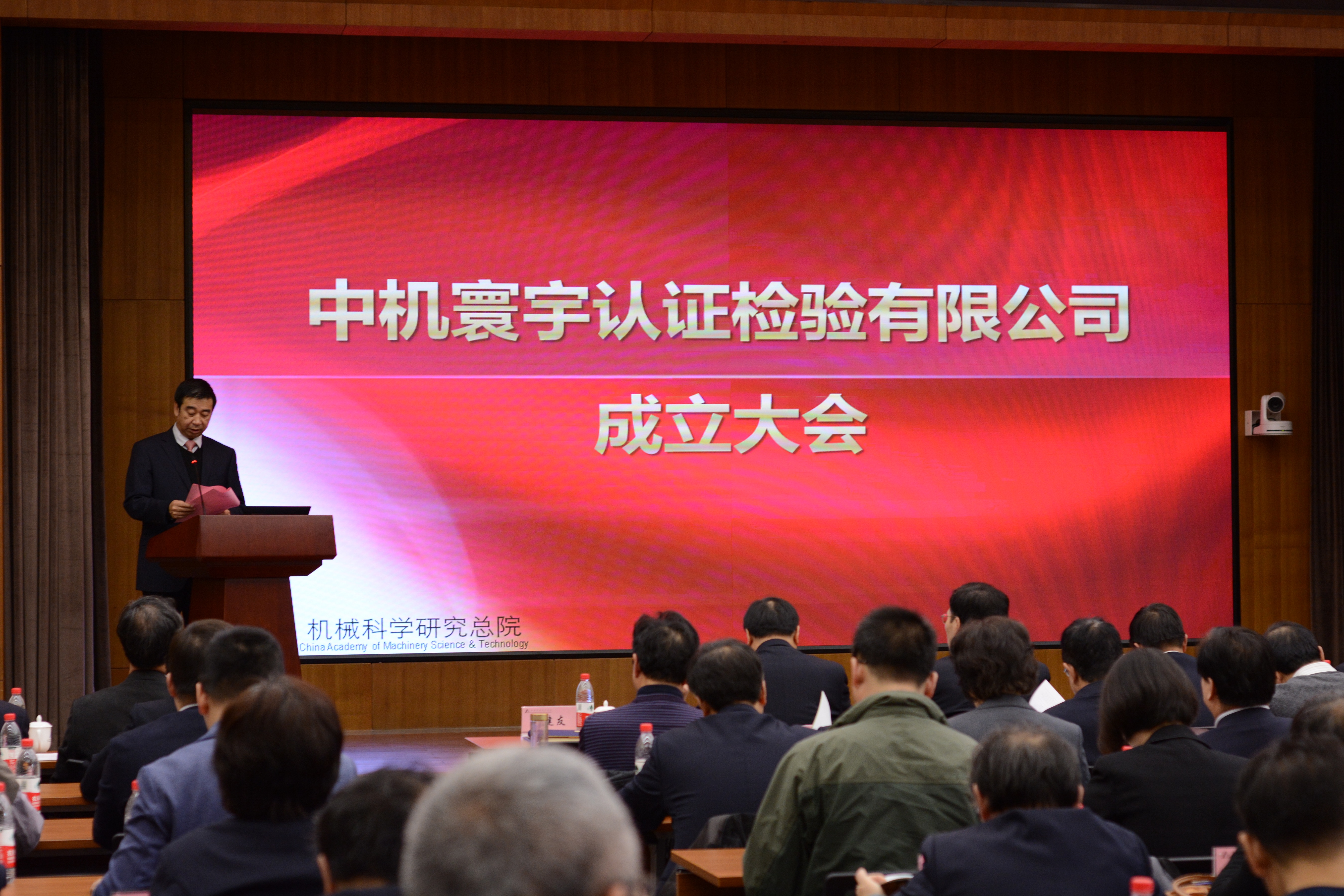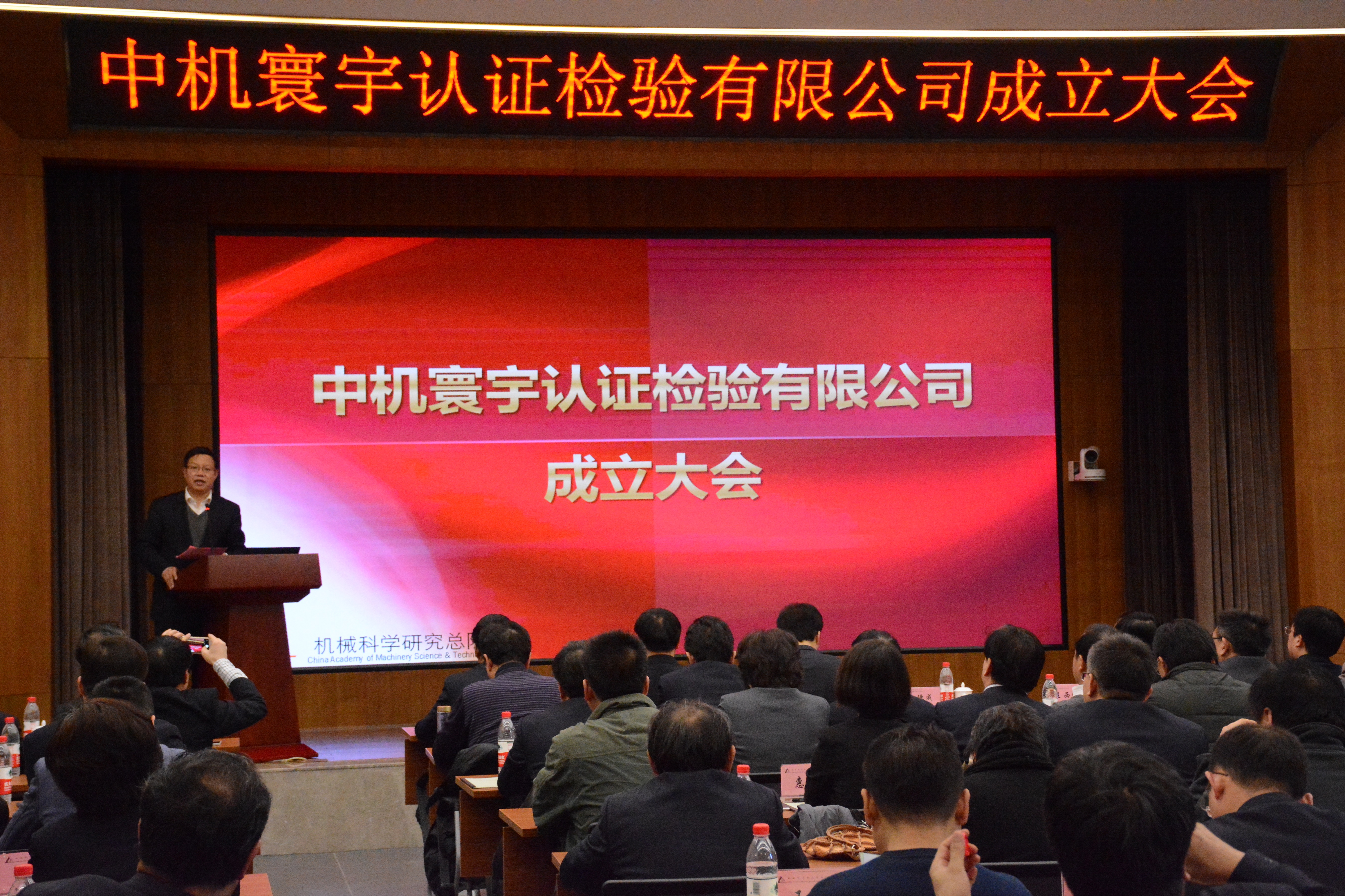 行业发展部刘中星副部长首先介绍了中机寰宇认证检验有限公司成立的背景、重要性、重组方案;总院副总经济师、企划管理部部长褚毅宣布了中机寰宇认证检验有限公司机构设置;工会主席、党群工作部部长杨玉亭宣布了成立中机寰宇认证检验有限公司临时党委的决定;人力资源部王宇部长宣布了中机寰宇认证检验有限公司相关领导任命的决定;中机寰宇认证检验有限公司领导黄雪、牛海军、付志坚进行表态发言。