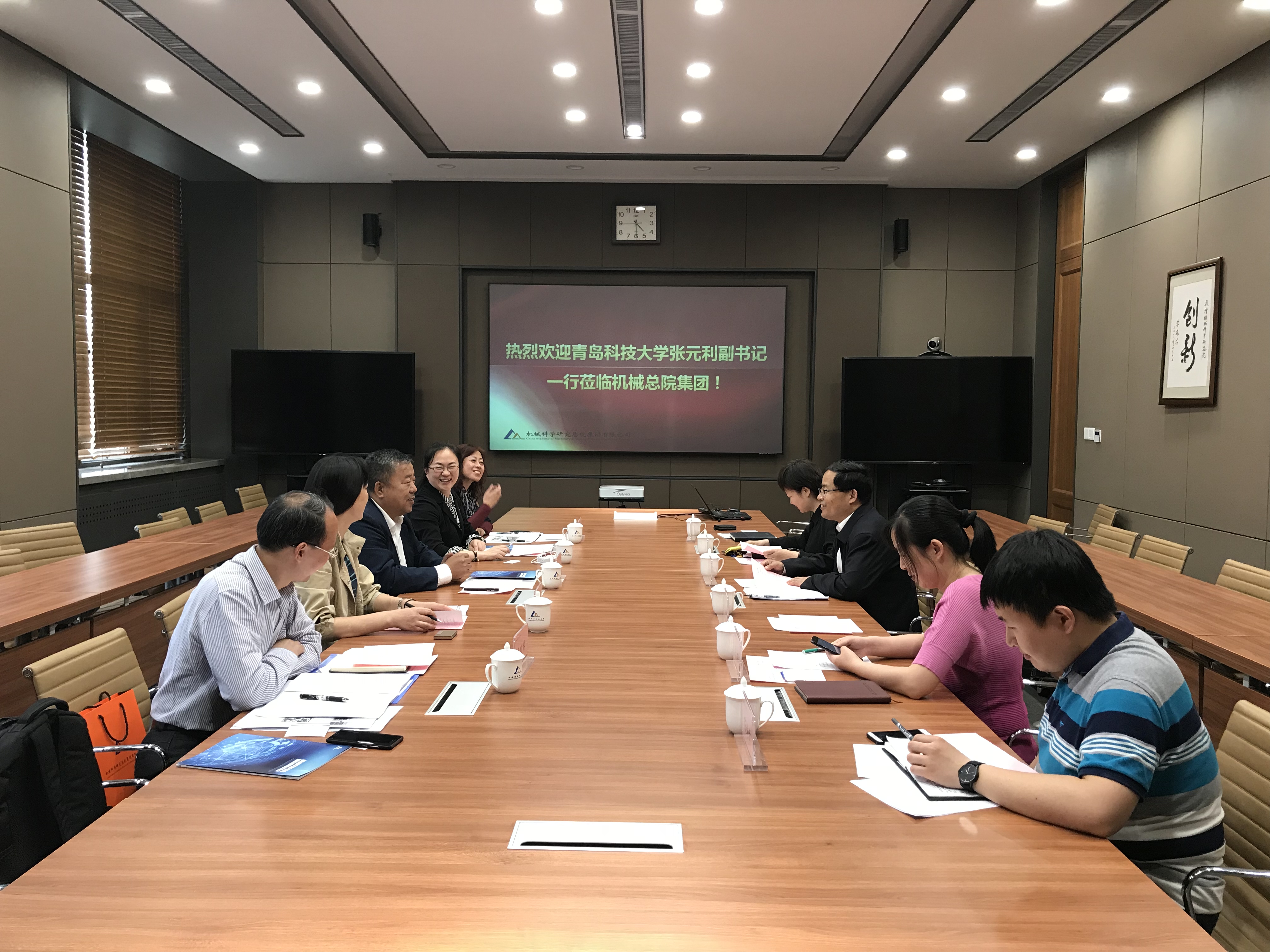 单忠德副总经理首先对张元利党委副书记一行的来访表示欢迎,介绍了米兰体育(中国)总院集团在科研开发、技术服务、研究生培养等方面开展工作的情况,提出了双方可以合作的内容。张元利党委副书记详细介绍了青岛科技大学在智能制造学院建设、研究生培养等方面的情况,表达了围绕智能制造领域落实更多合作的意愿。双方就共同申报山东省协同创新中心、智能制造实验室建设、智能制造联盟等方面进行了交流研讨。