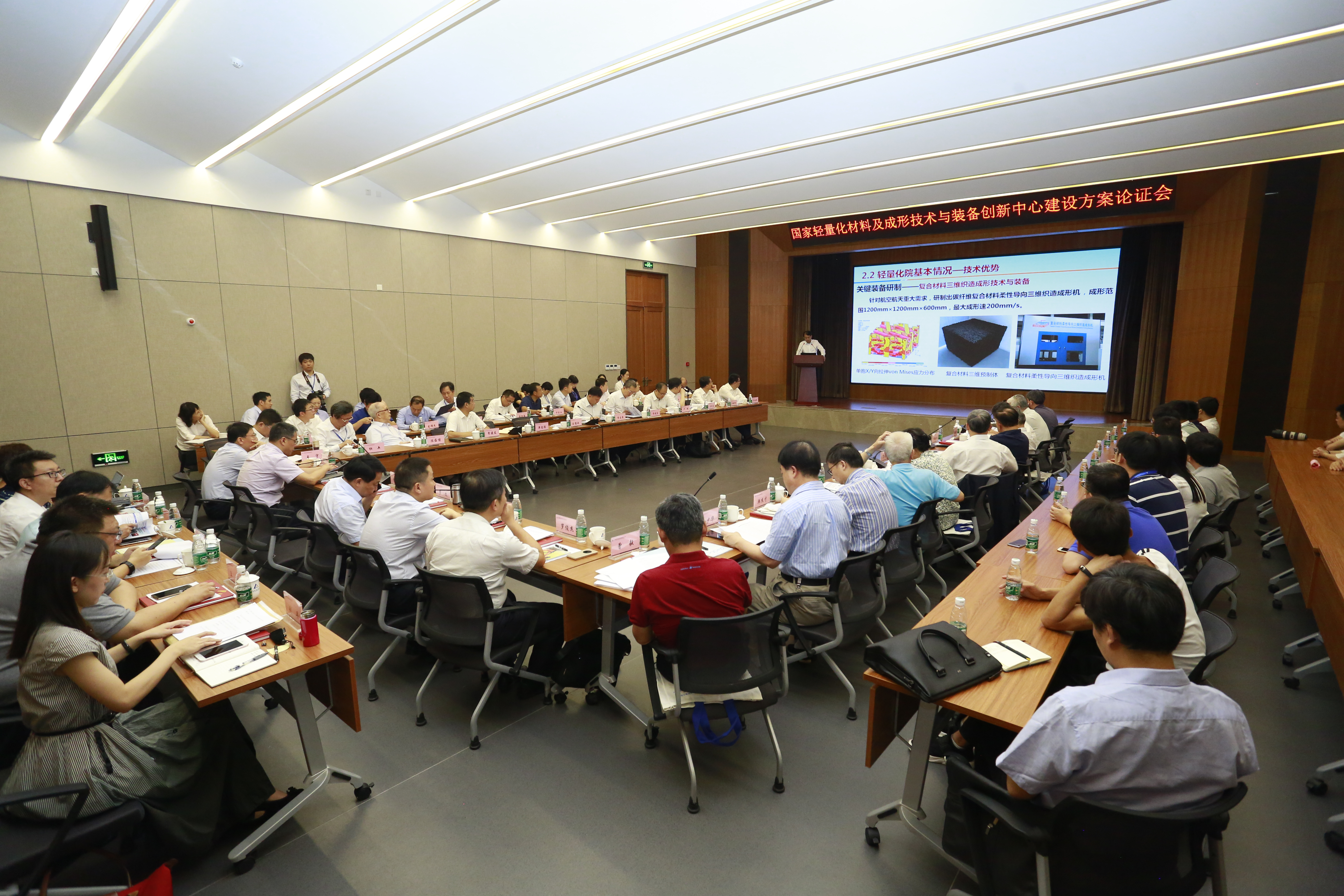 单忠德副总经理汇报了国家轻量化材料成形技术及装备创新中心建设方案。与会专家就创新中心功能定位、运行机制、建设目标和可持续发展等方面进行了深入讨论,并一致同意通过创新中心建设方案的论证。