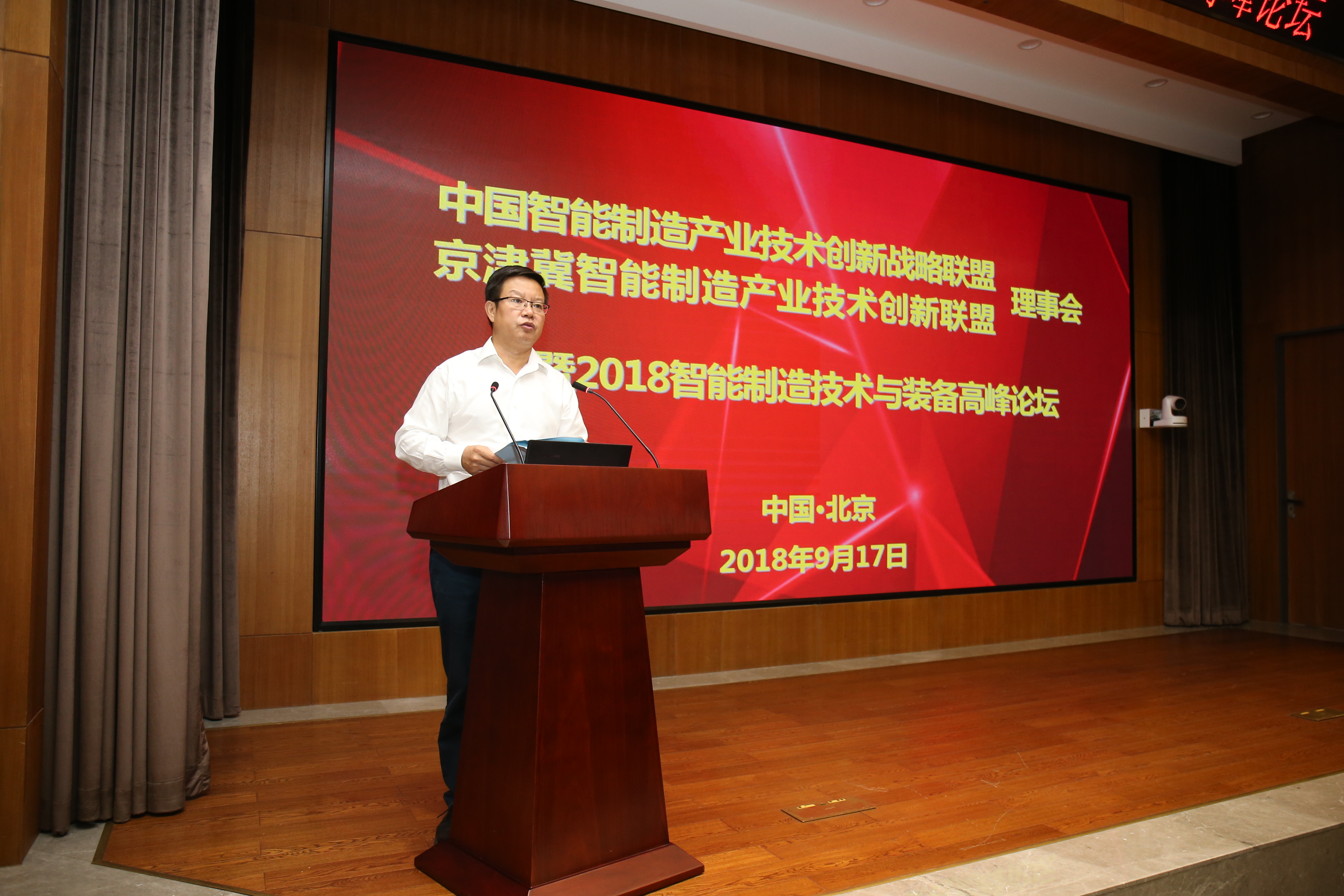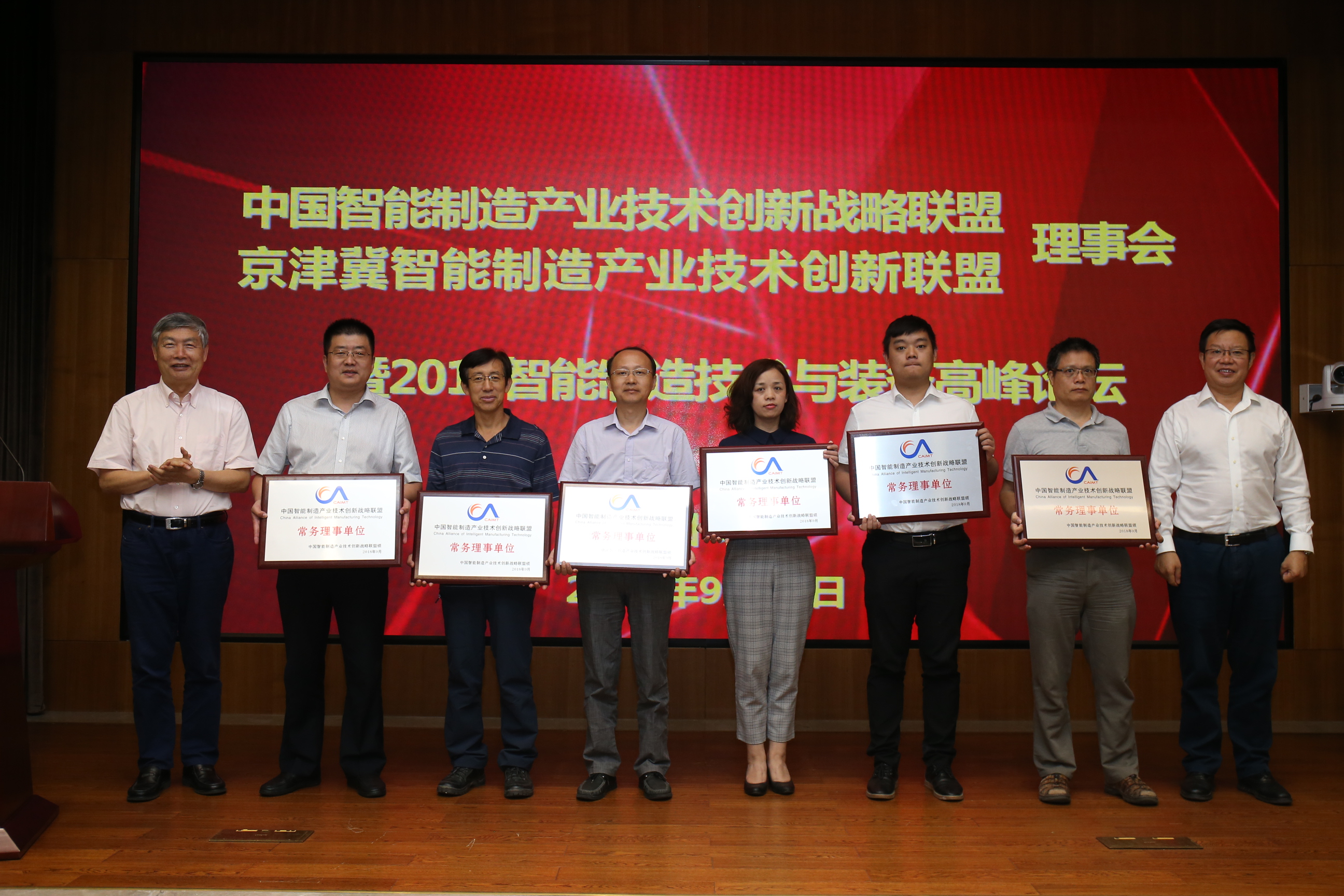 2018年9月17日,中国智能制造产业技术创新战略联盟、京津冀产业技术创新战略联盟暨2018智能制造技术与装备高峰论坛在京隆重举行。中国工程院原院长周济院士、联盟会长李培根院士、哈尔滨工业大学邓宗全院士、联盟理事长米兰体育(中国)总院集团党委书记、董事长、总经理王德成、联盟副理事长中国船舶重工集团公司副总经理杜刚,联盟专家委员中国工程院制造业研究室专家董景辰、中国纺织米兰体育(中国)器材工业协会总工程师祝宪民,中国一汽、中国中车、中国信通科技、西安交通大学等60家联盟理事单位、100余人参会,会议由米兰体育(中国)总院集团副总经理、中国智能制造联盟专家常务副主任委员、秘书长单忠德主持。