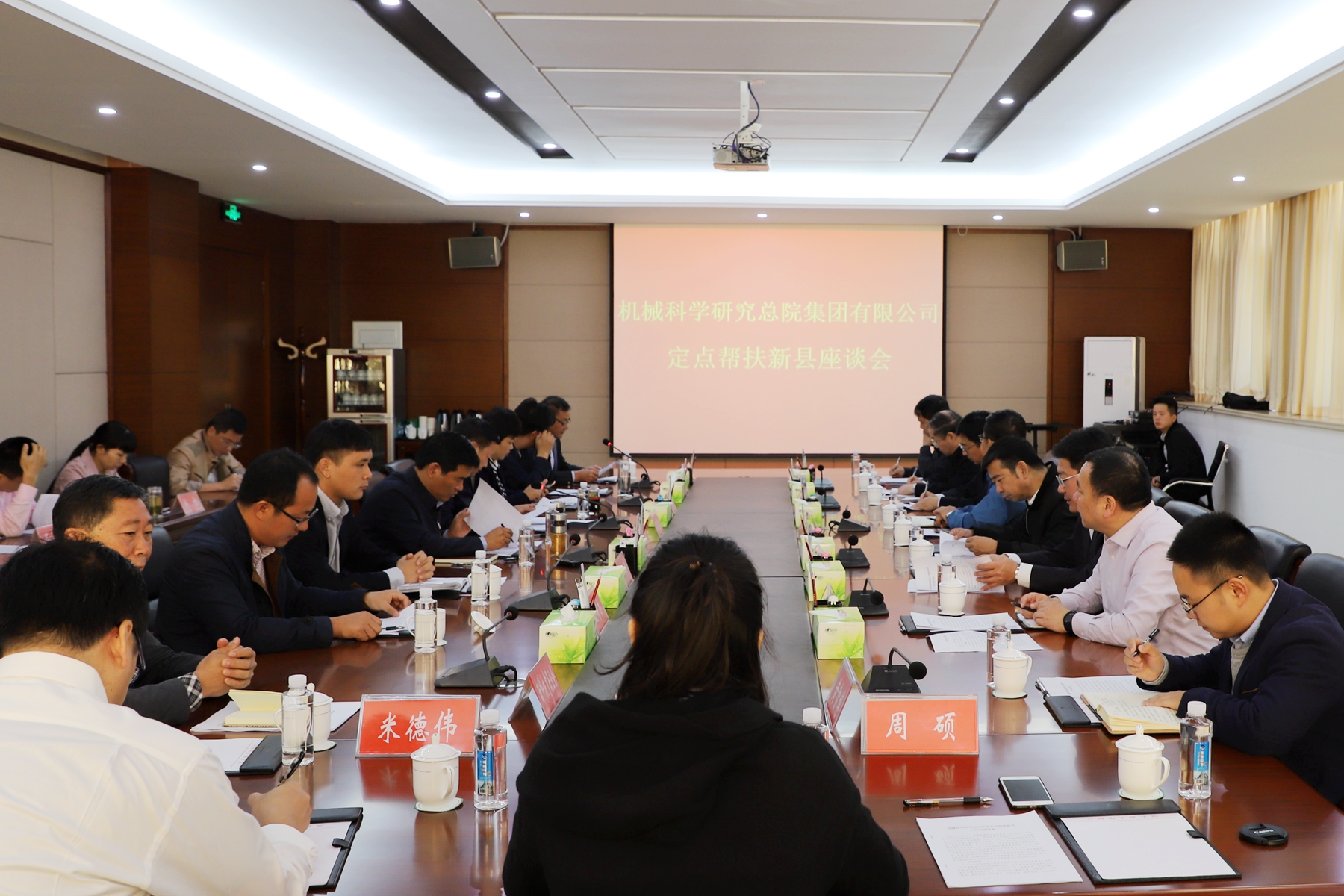 在第五个国家扶贫日来临之际,为巩固脱贫成果、助力乡村振兴,集团党委书记、董事长、总经理王德成、集团副总经理李建友于10月11日至13日率队赴定点帮扶对象河南新县考察调研精准扶贫工作,并看望集团扶贫挂职干部新县副县长田丰和金兰村第一书记冯伟。新县县委书记吕旅、副书记林志成、常务副县长熊建欣、统战部部长胡光志、副县长祁璟等参与调研,集团工会主席、党群部工作部部长杨玉亭、人力资源与干部部部长王宇以及院务工作部、产业发展部、科技发展部、哈尔滨焊接研究院、武汉材料保护研究所、中机一院等部门和二级单位相关负责人陪同调研。