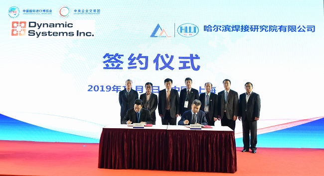 DSI亚太区总裁陈伟昌代表美国DSI公司和哈焊院副总经理徐锴签署了采购意向协议。