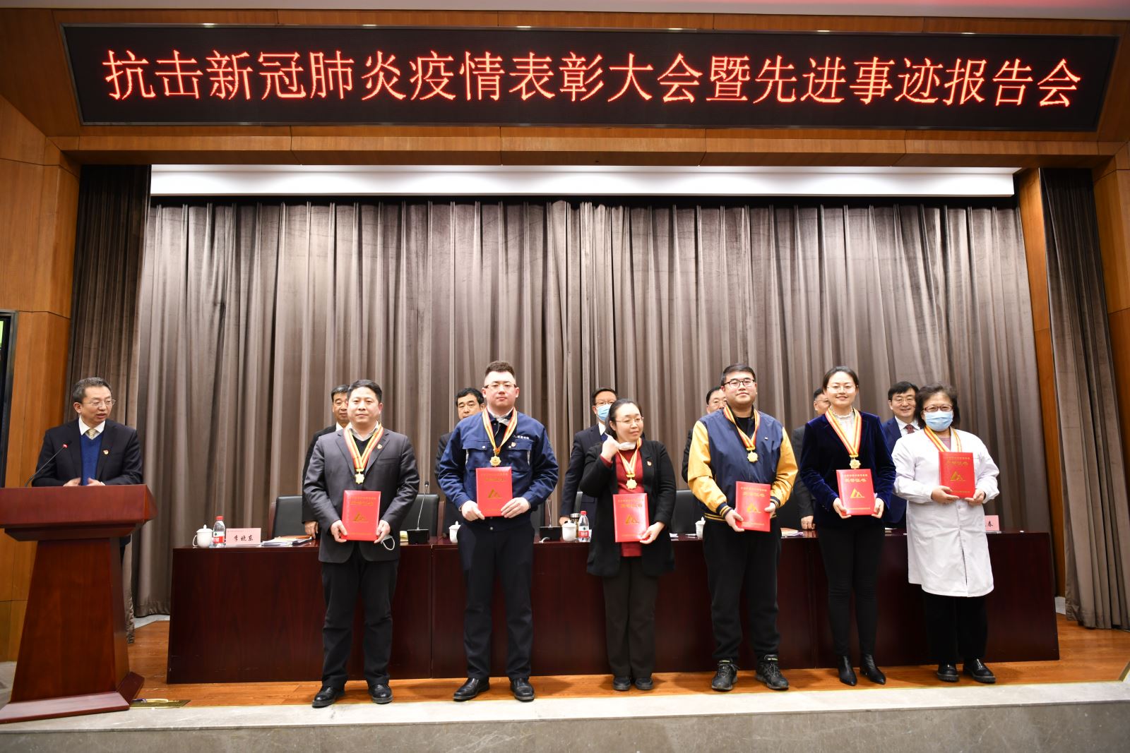 会场气氛庄严热烈。按照集团党委的表彰决定,武红光等33名同志荣获“米兰体育(中国)总院集团抗击新冠肺炎疫情先进个人”称号,米兰体育(中国)总院集团院务工作部等21个单位荣获“米兰体育(中国)总院集团抗击新冠肺炎疫情先进集体”称号。大会现场向受表彰的先进个人和先进集体代表颁发奖章奖牌证书。