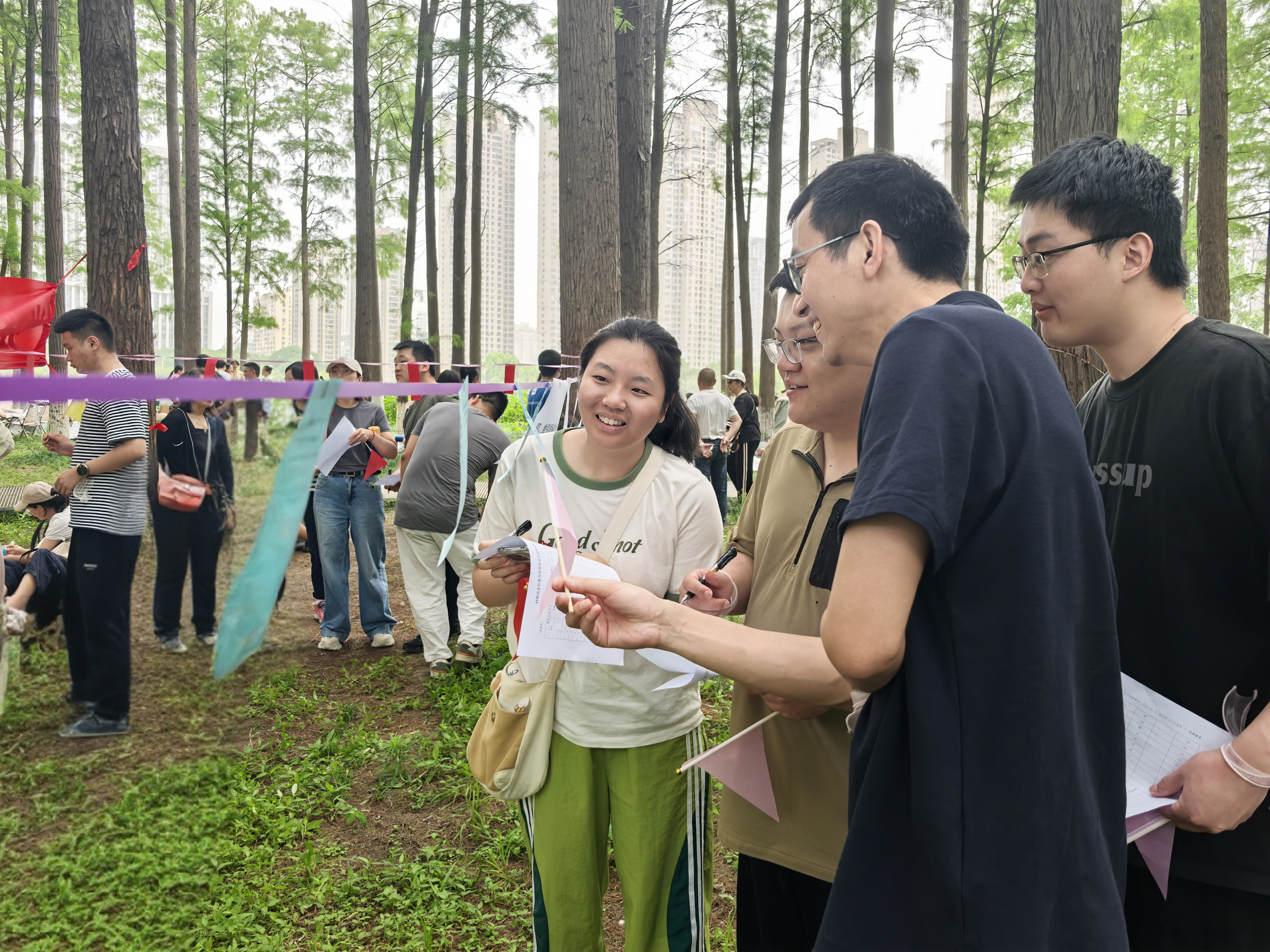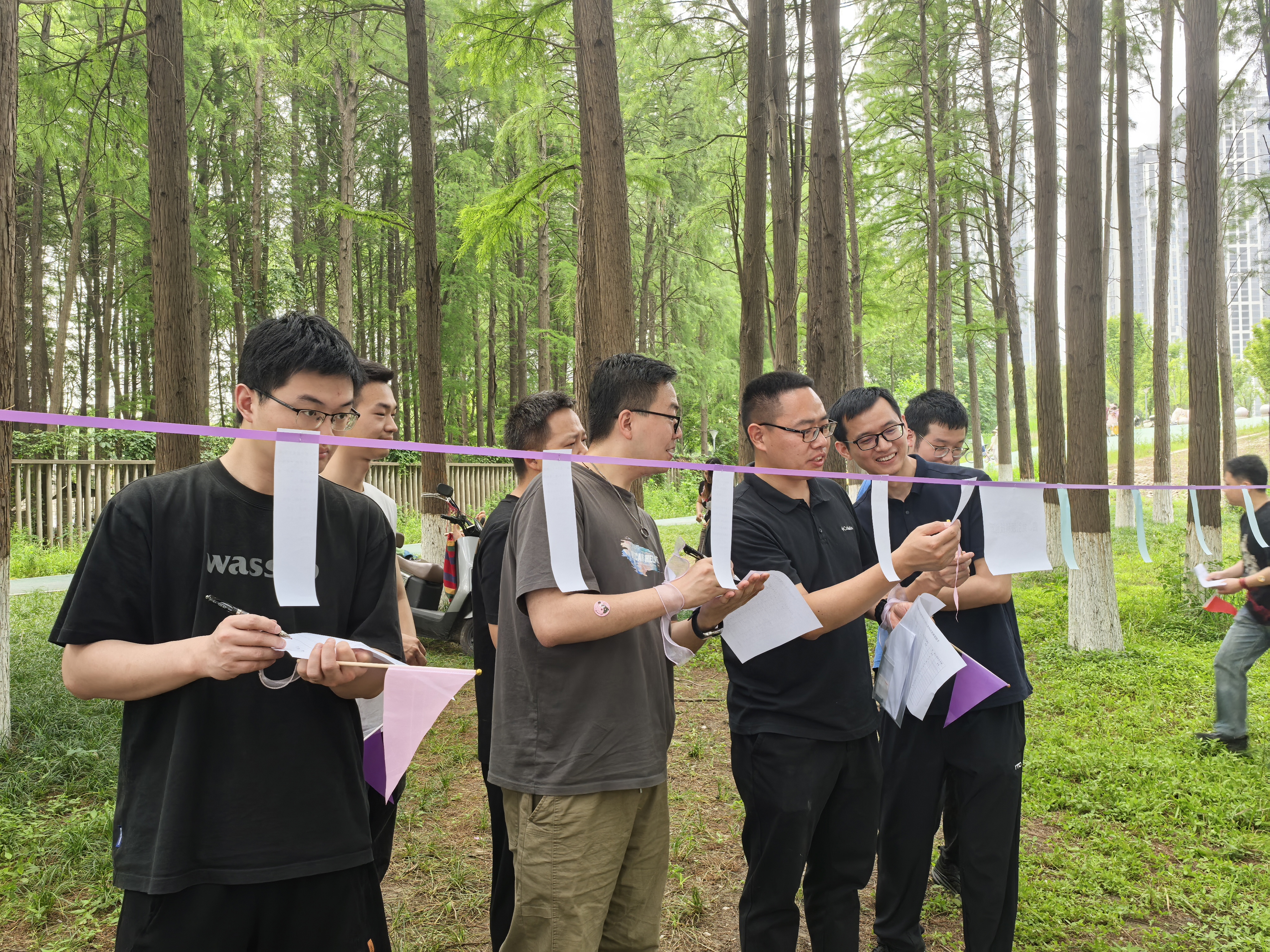 党务知识竞赛环节采取小组对抗形式,党员干部在绿荫环绕的户外赛场展开激烈角逐。活动设置“党的发展历史、理论体系、作风建设、科技创新”四大主题,通过情景化问答全面考察党员对党的基本知识和理论成果的掌握情况,在切磋比拼中营造“强基达标、创优争先”的浓厚学习氛围。