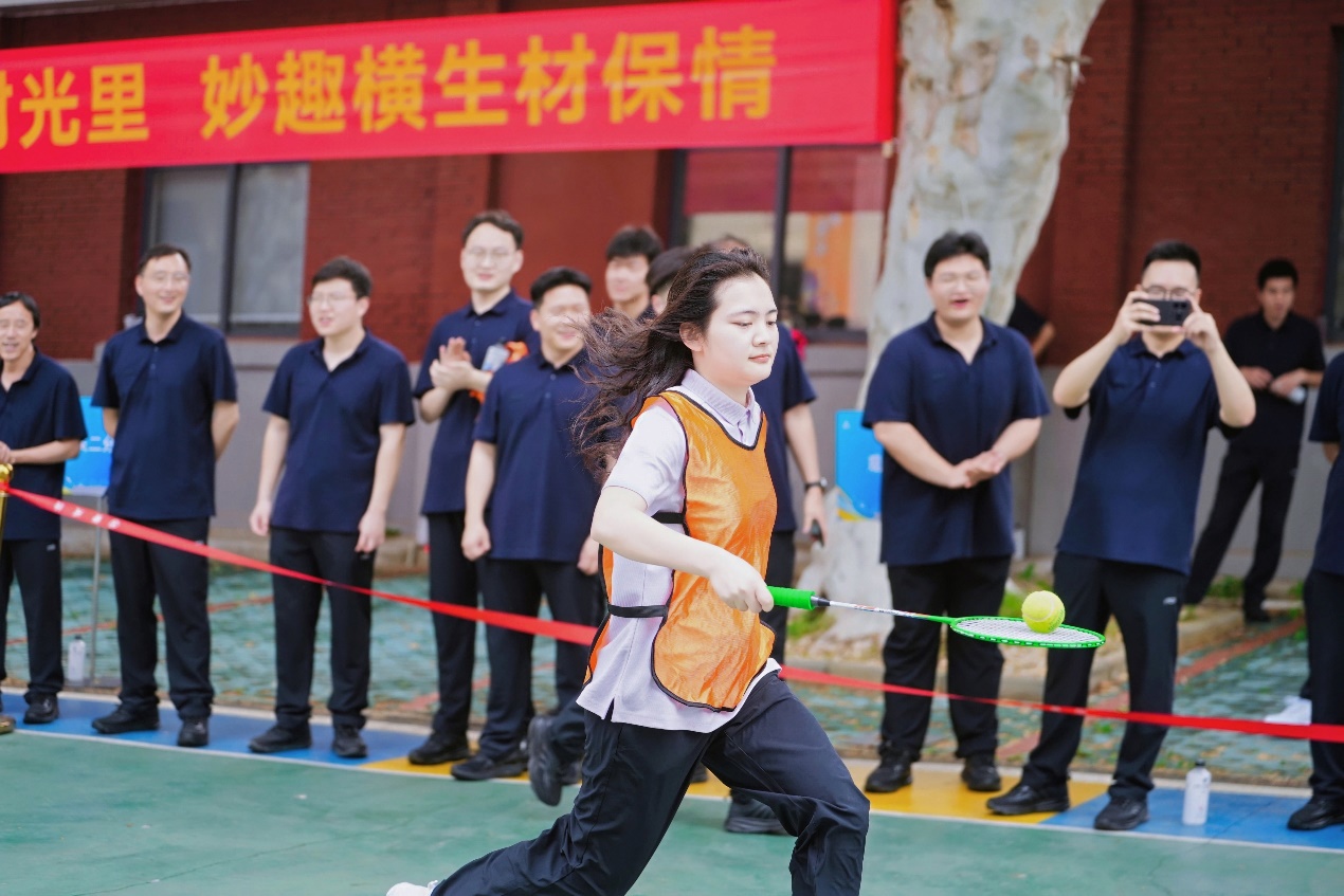 在“4×25米托球跑”赛道上,行业检测分工会的肖祥定因冲刺过猛差点滑倒,后面接力的陈亚平立刻扶住他,两人全力合作完成剩余赛程,尽管球滚落到地,却赢得观众席最热烈的掌声:“这比赢了还感动!”。该项目要求选手单手持羽毛球球拍,网球置于球拍上,托球向前跑,达到指定接力区内进行接力。第二名运动员接球后起跑,依次进行。这不是简单的跑步,而是一场人和球的共舞,是对"稳"的极致追求。既要速度又要平衡,妙趣横生。最终,全国重点实验室分工会以“全程未掉球”的稳定性顺利夺冠。