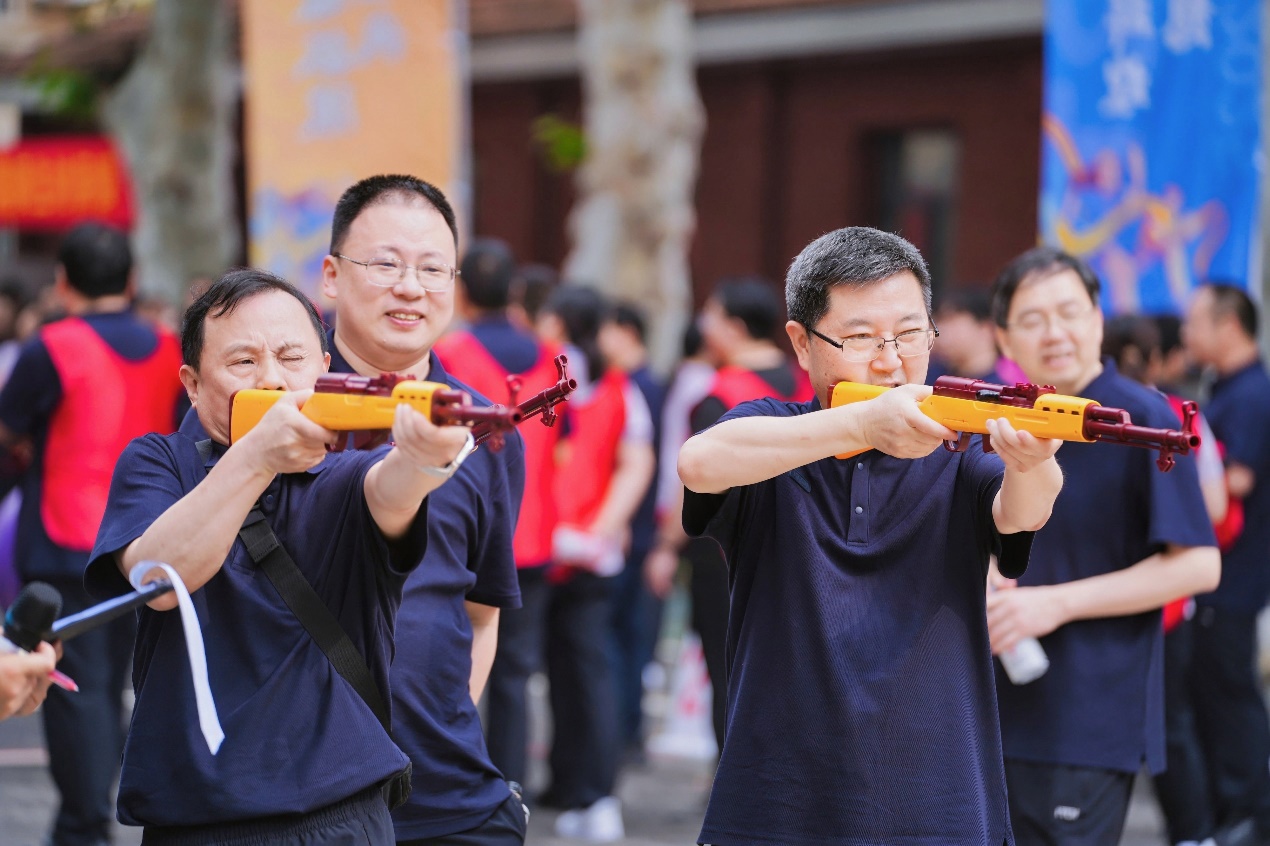 射气球:作为本次运动会最“有童趣”的竞技项目,射气球采用“个人积分制”:每位选手站在2米外指定白线后,持安全弹珠枪连续发射6发子弹,以击破气球数量累计排名计分。“注意姿势别抖,靶子在视平线!”裁判组的友情提醒混着“再中一个!”的助威声,将现场氛围不断推向高潮。从童年记忆里的弹珠枪,到成人赛场上的“靶心挑战”,射气球项目用“嘭嘭”的炸裂声,将竞技的紧张与生活的趣味,写成了运动会里最鲜活的注脚。