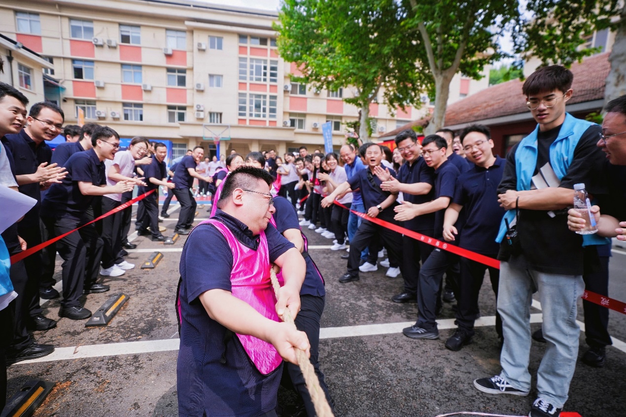 随着裁判一声“预备——开始!”,材保所2025年职工趣味运动会迎来压轴好戏——拔河比赛现场瞬间沸腾。20米长的麻绳绷成直线,两队队员双脚紧蹬地面,手臂青筋暴起,中间的红绸在“僵持”中反复游移。场上,队员涨红着脸齐喊“一二”凝聚力量;场边,观赛职工此起彼伏的“加油”声穿透初夏晴空,汗水与呐喊交织成炽热的助威曲。最终,表面材料分工会以“重心稳、齐发力”的战术连克强敌,摘得冠军。这场力与心的较量,让“团结”二字从口号化作共赴的热望,深深镌刻在材保所职工的精神底色中。