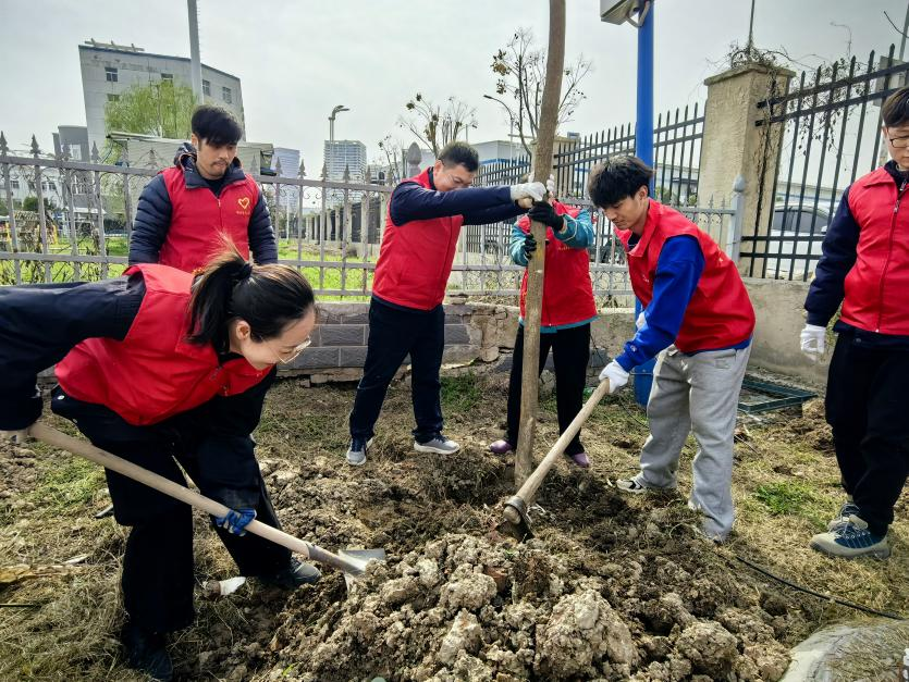 活动现场,青年们热情高涨,干劲十足。挥锹铲土、扶苗填坑、培土浇水,每一个环节都衔接有序,配合默契。尽管天气微寒,但大家额头上都渗出了汗珠,劳动的热情驱散了初春的凉意。经过数小时的辛勤劳作,70 余株樟树傲然挺立,160 余平方米的滕本苗木也稳稳扎根于土壤之中,为初春的大地披上了一层生机勃勃的绿装。