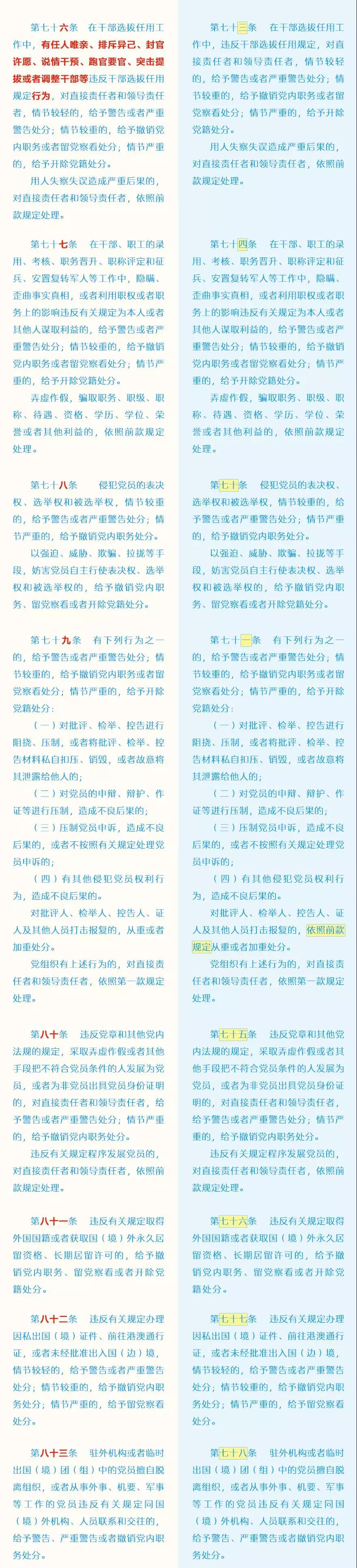 此次修订的主要内容包括哪些?这些变化背后体现了怎样的理念?集团纪委引用了中央纪委国家监委网站的“《中国共产党纪律处分条例》修订前后最全对照表”,帮助大家读懂新修订的党纪处分条例。