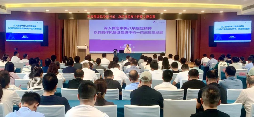 调研期间,孟祥宇以《深入贯彻中央八项规定精神,以党的作风建设推动中机一院高质量发展》为题讲授专题党课。他在党课中提出四点要求,提高政治站位,深入学习运用党的创新理论立场观点方法,统一思想、激发干部职工内生动力;严明纪律规矩,将中央八项规定精神作为行动标尺,践行“平台>团队>个人”理念,保障高质量发展;建强干部队伍,坚持“德才兼备、以德为先”标准,加快高素质干部人才队伍建设,激励担当作为;深化科研融合,推动“有组织科研”深度融入主业,强化科技创新与产业创新协同联动,铸就发展新引擎。