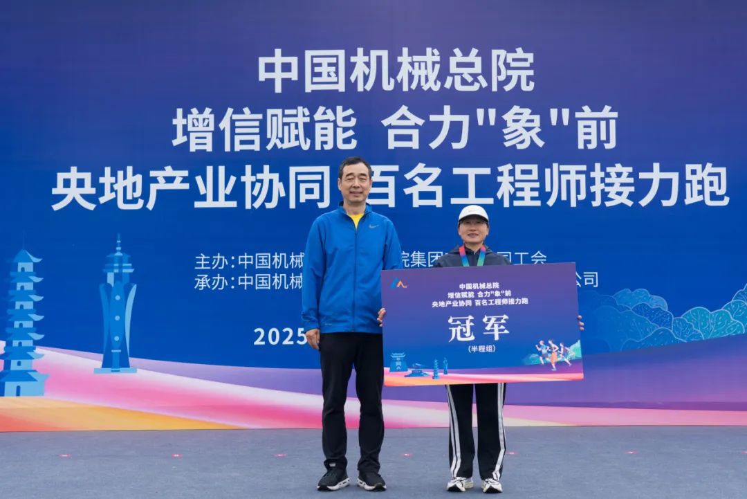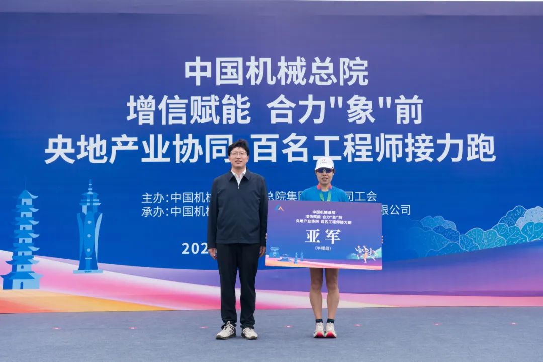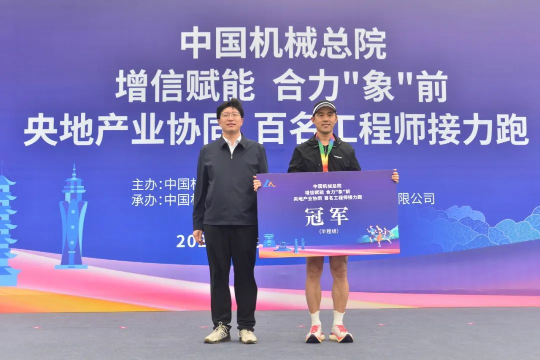 挥洒汗水,铸就辉煌。经过激烈角逐,第12组“混编战队”获接力跑团体第一名;机科股份李红彬、宁波全力模具叶爱红分别获得半程马拉松男子组、女子组冠军。